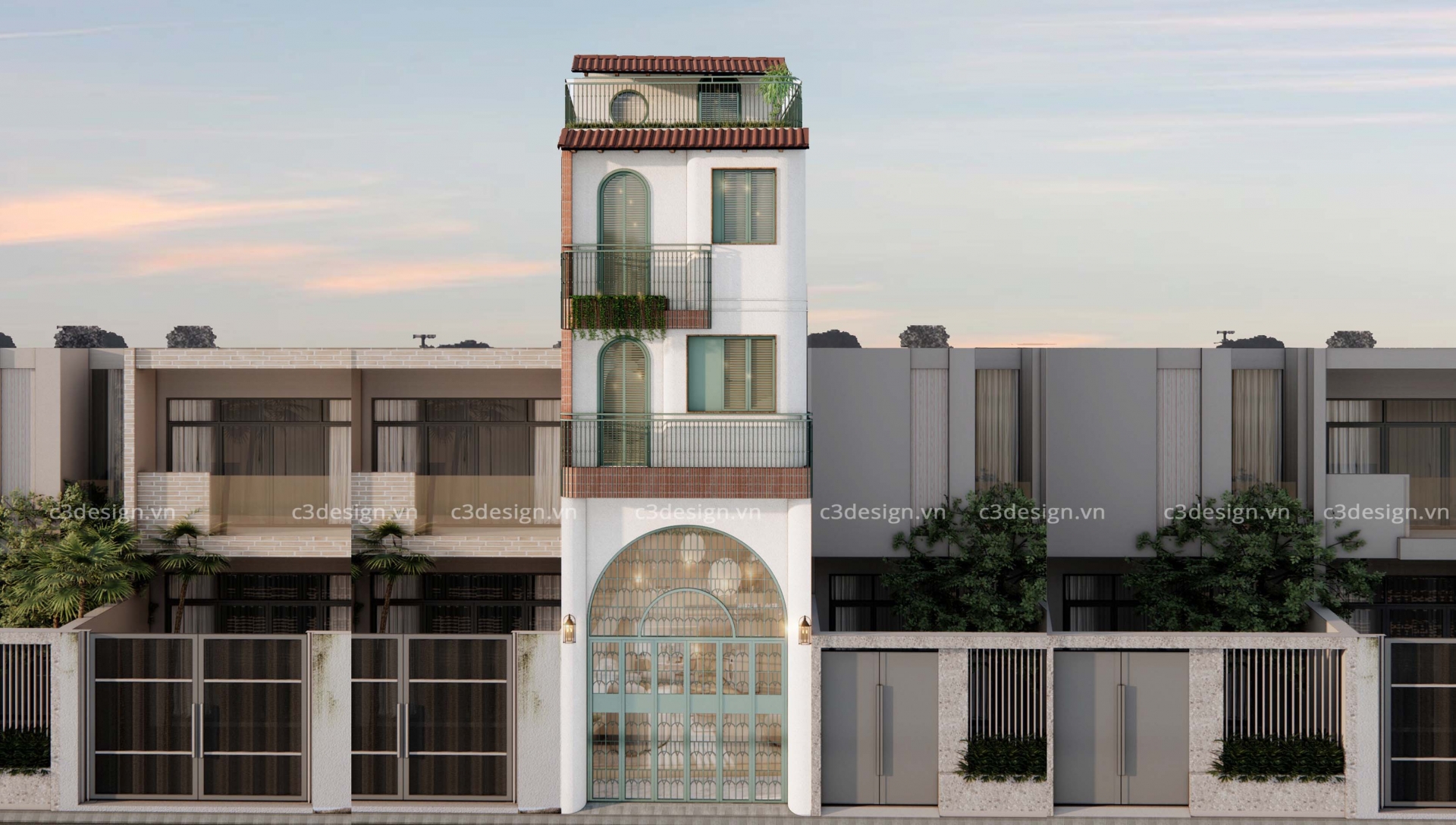 Với đặc trưng của khí hậu nhiệt đới tại TP. Hồ Chí Minh – nắng gắt và mưa nhiều – công trình được thiết kế với hệ mái đua, ban công và mái che chắn nắng nhằm giảm thiểu bức xạ nhiệt trực tiếp lên tường và cửa kính.Ngoài ra, các khoảng thông tầng ở Trệt và Lửng trong giúp tăng cường lưu thông không khí, giảm thiểu sự tích tụ nhiệt và tạo cảm giác dễ chịu trong không gian ở.